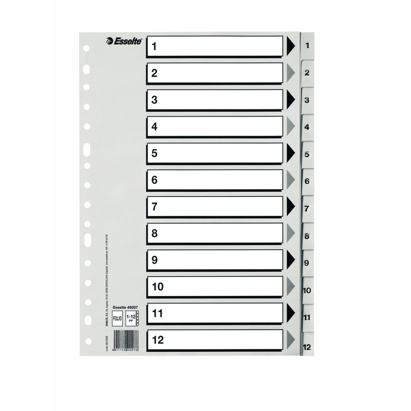 Separadores Indice 1-12 Polipropileno Folio...